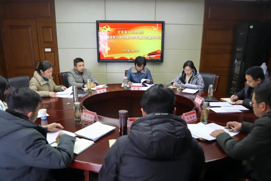 红安网消息 2月25日下午,红安县人民检察院召开2025年党组理论学习中心组第2次集体学习,院党组书记、检察长郑勇主持会议。县委宣传部常务副部长王洪涛同志列席旁听。