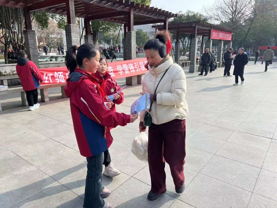 随后,少先队员到天舒广场开展志愿服务,向市民发放传单,普及消防安全知识,以实际行动践行“奉献、友爱、互助、进步”的志愿服务精神。
