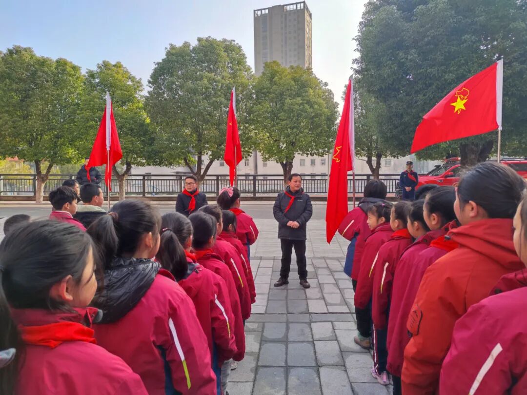 将军城小学少工委与红安县应急救援局联合举办“红领巾牵手火焰蓝 学雷锋引领新风尚”校外实践活动。学校少工委副主任、副校长陈先胜做动员讲话,号召全体少先队员以“雷锋精神”为指引,践行社会主义核心价值观,练就过硬本领,早日成长为祖国未来事业的合格建设者和接班人。