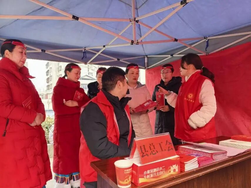 活动现场热闹非凡,来自各条战线的女职工和农民工朋友们欢聚一堂,广场演出活力满满。县总工会在活动现场,通过“普法宣传”+“女性保障”双举措,切实做到为女职工办实事、解难题,吸引了全县各行业女职工的广泛参与。身穿志愿服务红马甲的工作人员穿梭在人群中,向女职工、农民工及周边职工群众发放精心准备的法律宣传手册,涵盖《工会法》《女职工劳动保护特别条例》《农民工维权手册》《职工医疗互助宣传册》等内容。