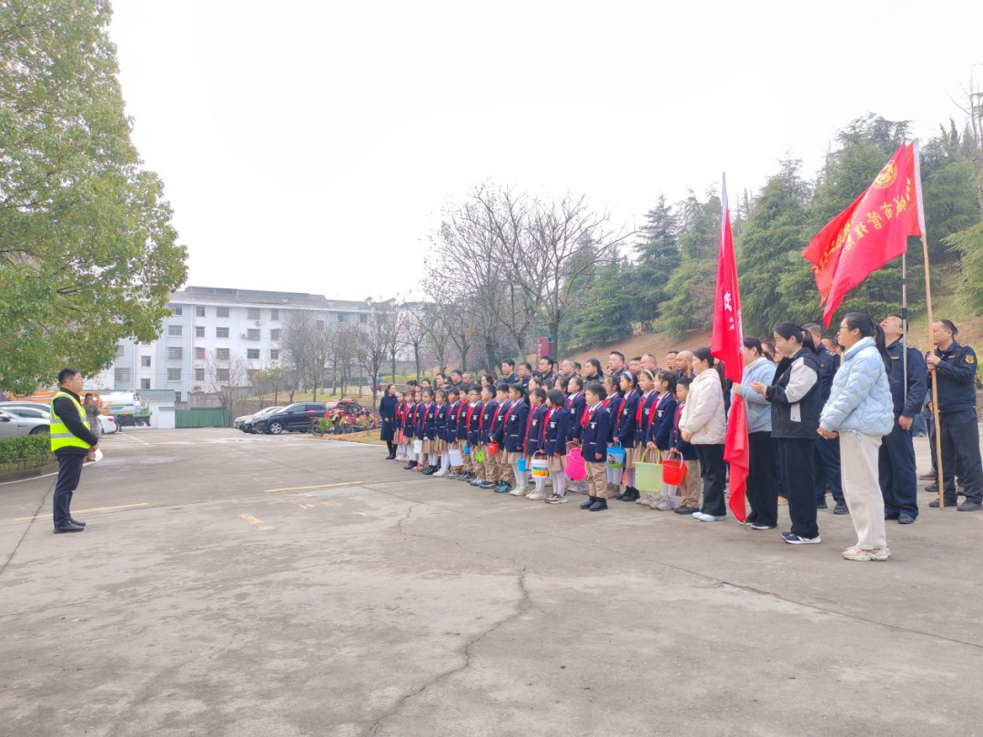 活动现场,大家默契配合,挥锹铲土、扶树填坑、浇水定根,合力栽植樟树、龙柏等树苗共230余棵,鲜活的树苗与雨后焕新的石阶相映成趣,党旗在春风中飘扬。