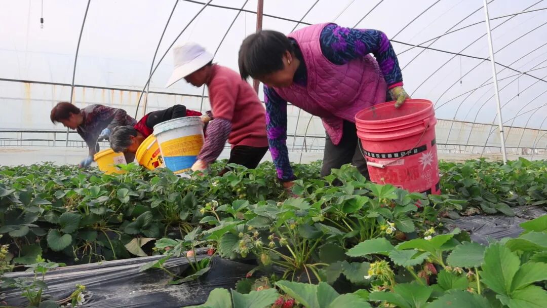 眼下,正值草莓采摘时节,八里湾镇大金山村村民余贵莲,每天都会准时来到艺丰农业草莓基地务工。