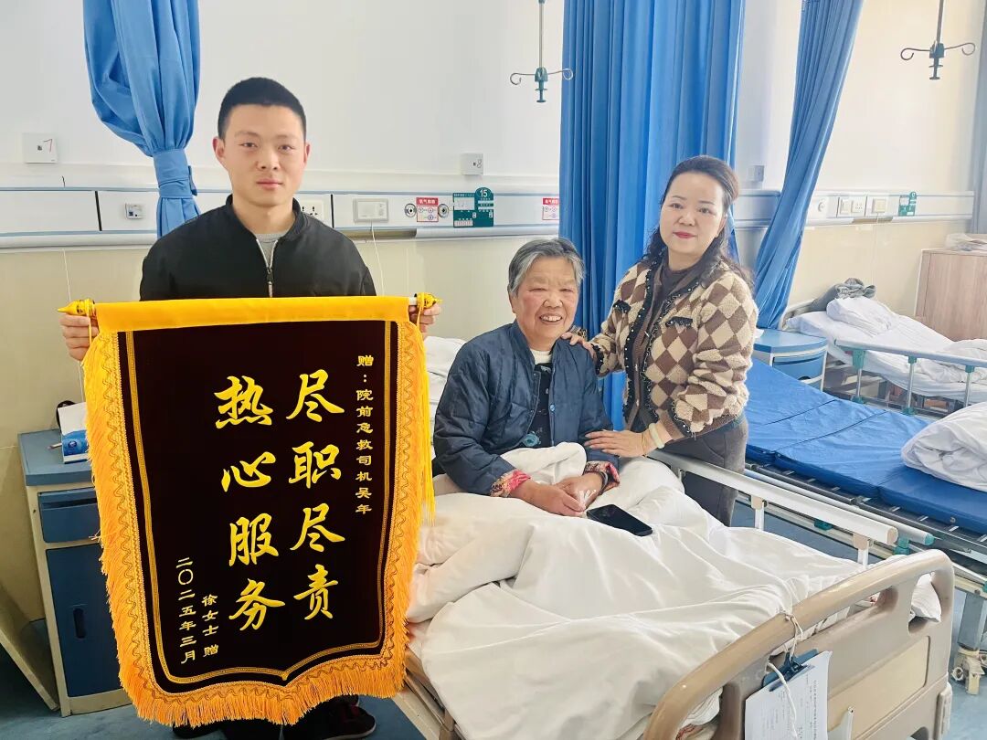 病房里,康复后的徐奶奶及从外地赶回的家属为他送上一面锦旗,他摘下沾满汗渍的工作帽,颤抖着接过这面有声的荣誉,"我觉得这真的不算什么,当时就想着和死神赛跑···",这位曾在陆军某部服役2年的兵哥哥露出腼腆笑容。