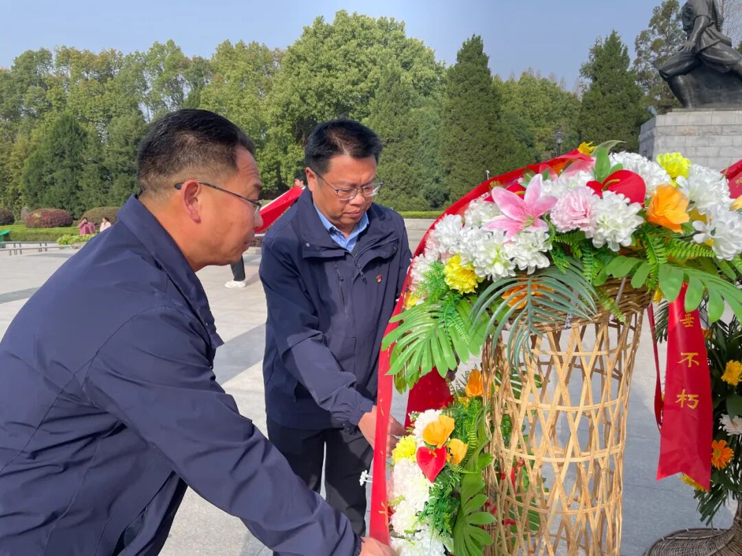 活动在激昂的国歌声中开场,全体师生列队整齐,向革命烈士碑默哀致敬,现场气氛凝重。学生代表敬献花篮,表达对先烈的哀思与敬仰。学校党委书记陈露春、校长汪绪林上前整理花篮缎带,庄严的动作饱含着对先烈的敬重。