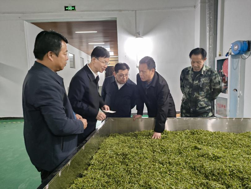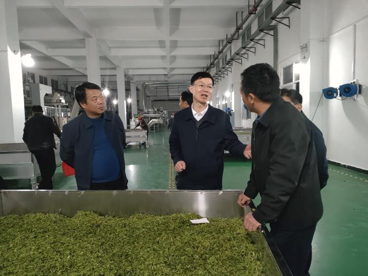 红安网消息 4月4日晚,正值清明节茶叶生产关键时期,湖北省林业局局长王昌友、黄冈市林业局局长骆明正一行,走进灯火通明的老君眉茶加工车间,实地了解老君眉茶加工生产过程,调研林业产业建设情况,红安县林业局相关人员陪同。