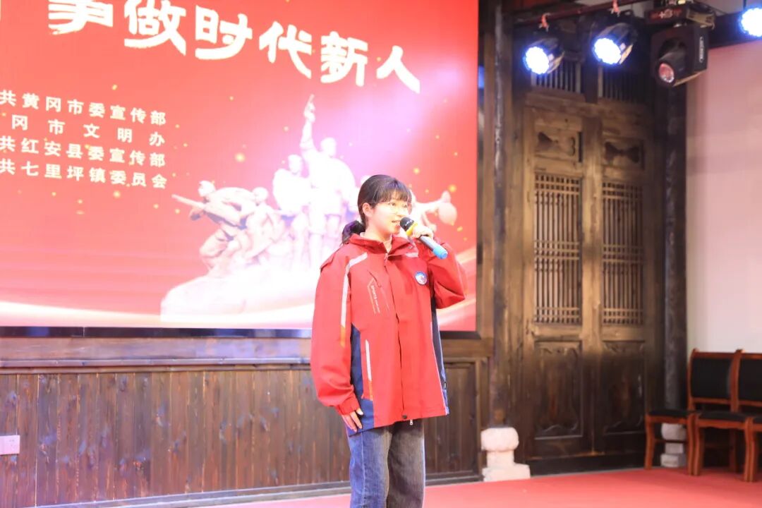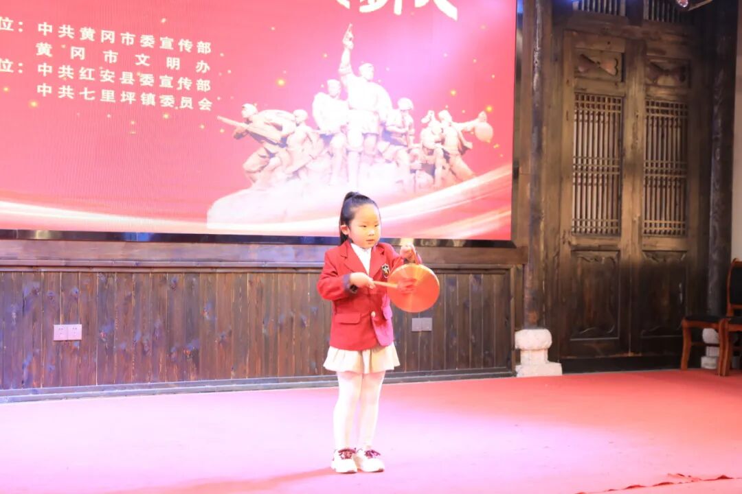红安“小苹果”以活泼的方言介绍家乡长胜街300年历史,七里坪镇“小小红色讲解员”梁慧缘代表全县766名同龄人郑重承诺传承革命精神。