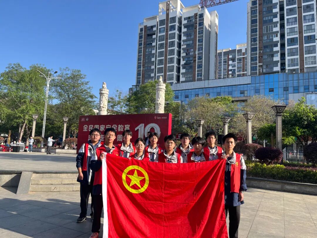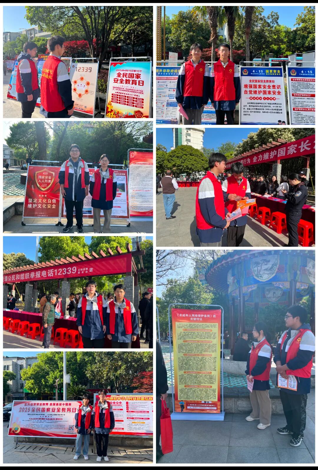 当天上午,高二年级学生志愿者来到天舒广场,积极投身于国家安全教育宣传志愿服务中。他们身着志愿服,手持宣传资料,热情地向过往市民发放,引导市民参观宣传展板,用通俗易懂的语言为大家介绍政治安全、经济安全、网络安全等多个领域的安全知识,解答市民提出的疑问。