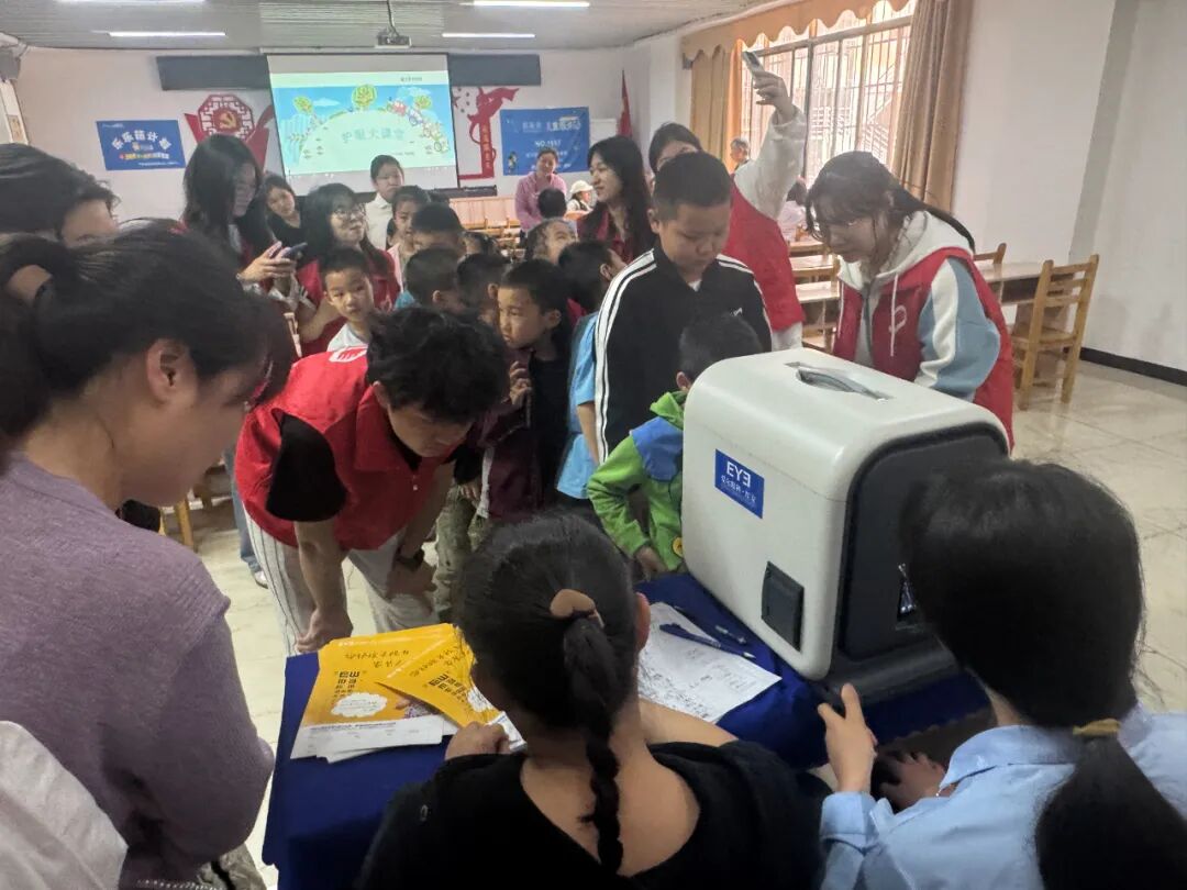 活动中,眼科医生用简单的语言,配合丰富的PPT为大家讲解眼睛的生长发育过程、近视眼的病因和防护知识。讲解结束后,眼科医生拿起手边的专业仪器为孩子们进行了全面的视力筛查,检查项目有裸眼视力检查、电脑验光、斜视等,并针对检查结果给出专业的治疗方案及预防近视的建议。