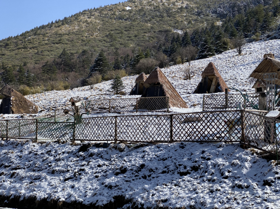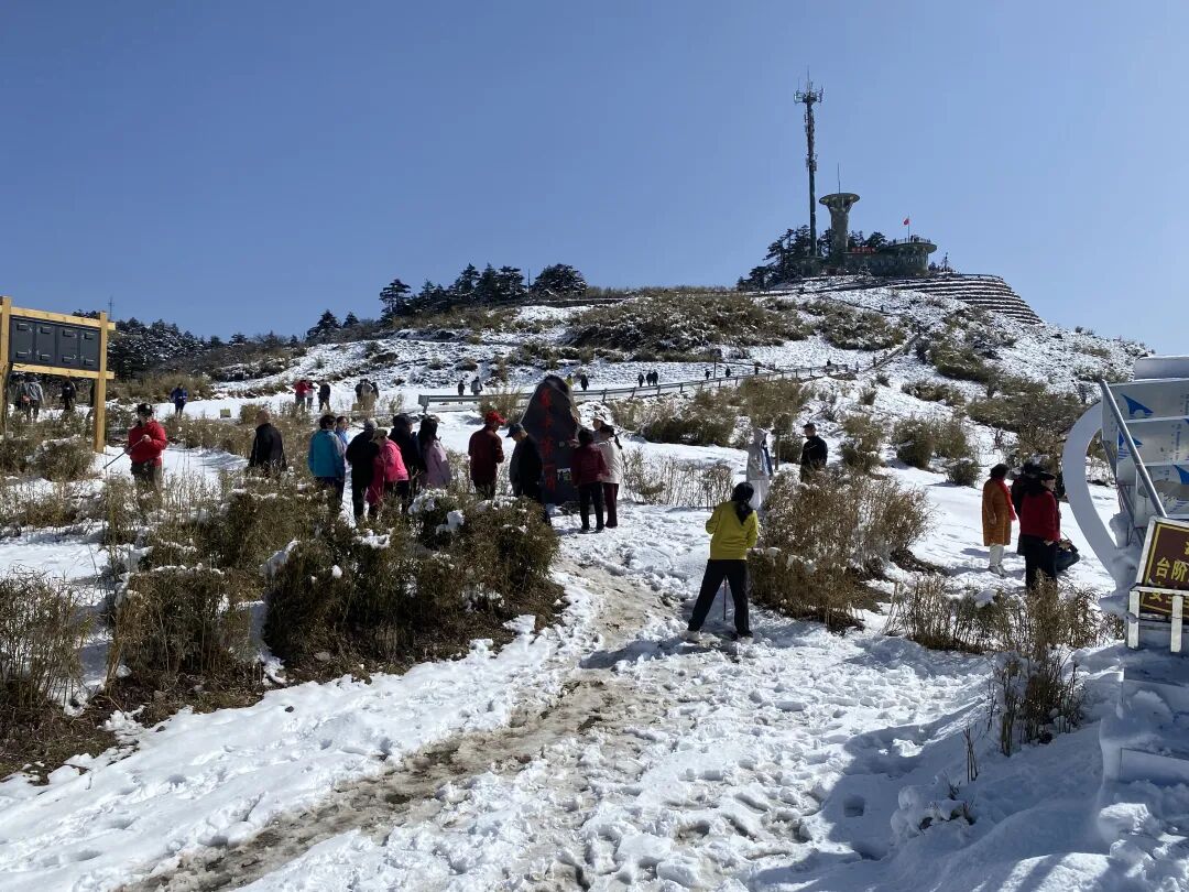 而在神农顶景区的神农营,却又是一番别样风景。山峰被积雪一分为二,上半部分沐浴在春日的绿意中,嫩绿的树叶在阳光的照射下闪烁着勃勃生机;而下半部分则披着洁白的银装,厚厚的积雪在山风的吹拂下,仿佛洁白的精灵跃动闪烁。这种“半山春色半山冬”的奇特景象,让人不禁赞叹大自然的鬼斧神工。