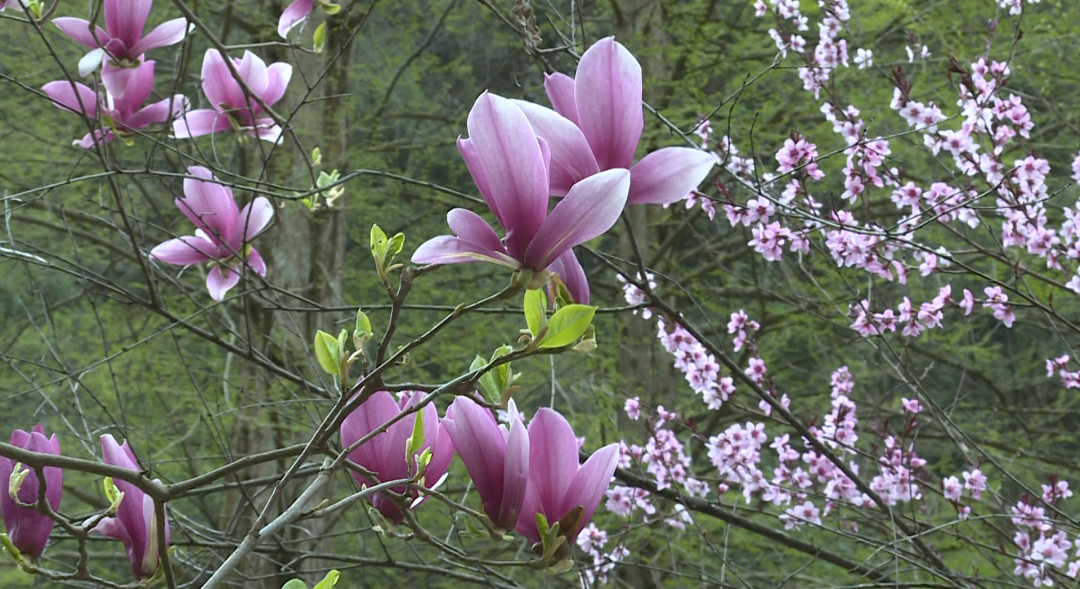 四月的官门山,早已换上了春的盛装。树木展开茂密的枝叶,大片的翠绿映入眼帘,宛如一幅充满生机的画卷。盛开的二乔玉兰、樱花、碧桃、桃花和杜鹃花等春季花朵,如同一颗颗璀璨的明珠,镶嵌在绿色的背景上,绘制出一幅春日美景图,让人沉醉其中,仿佛步入仙境。