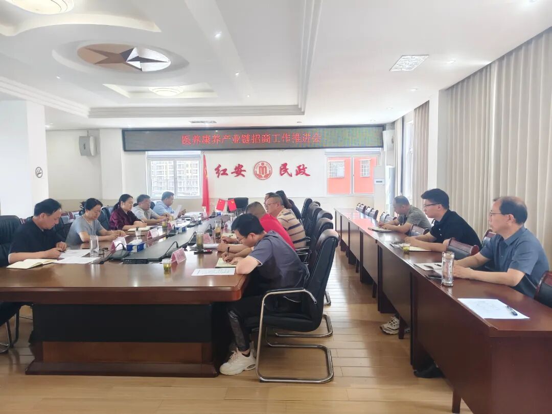 红安网消息 5月7日,红安县召开医养康养产业链招商工作推进会议。会议聚焦康养产业链,总结阶段性成果,部署下一阶段工作,全力推动红安医养康养产业向集群化、高端化迈进。县领导韩琼、刘晓军、高红英、郑勇,以及统战部、民政局、公共检验检测中心、招商投资促进中心等相关单位负责人参加。
