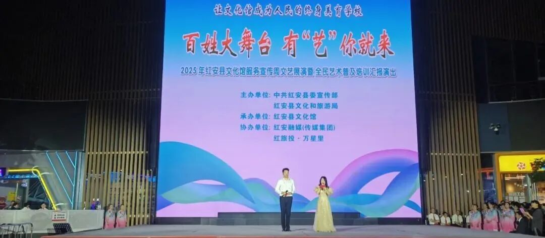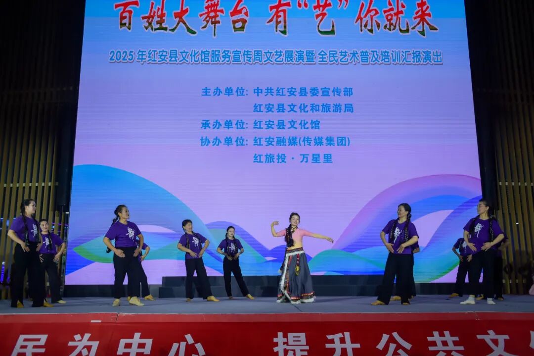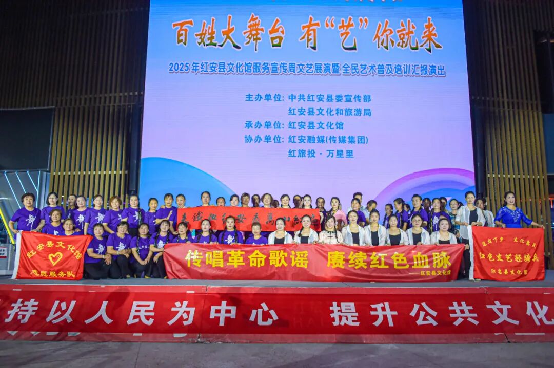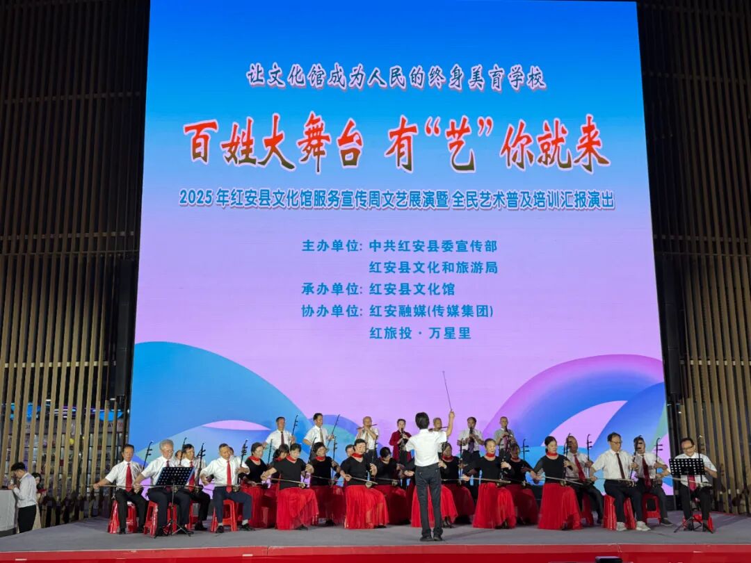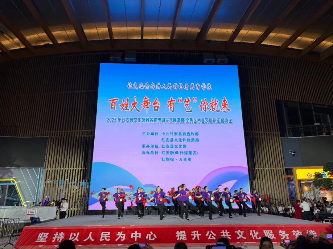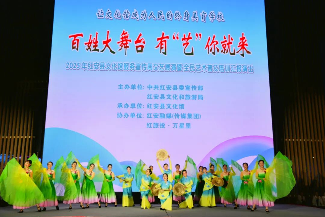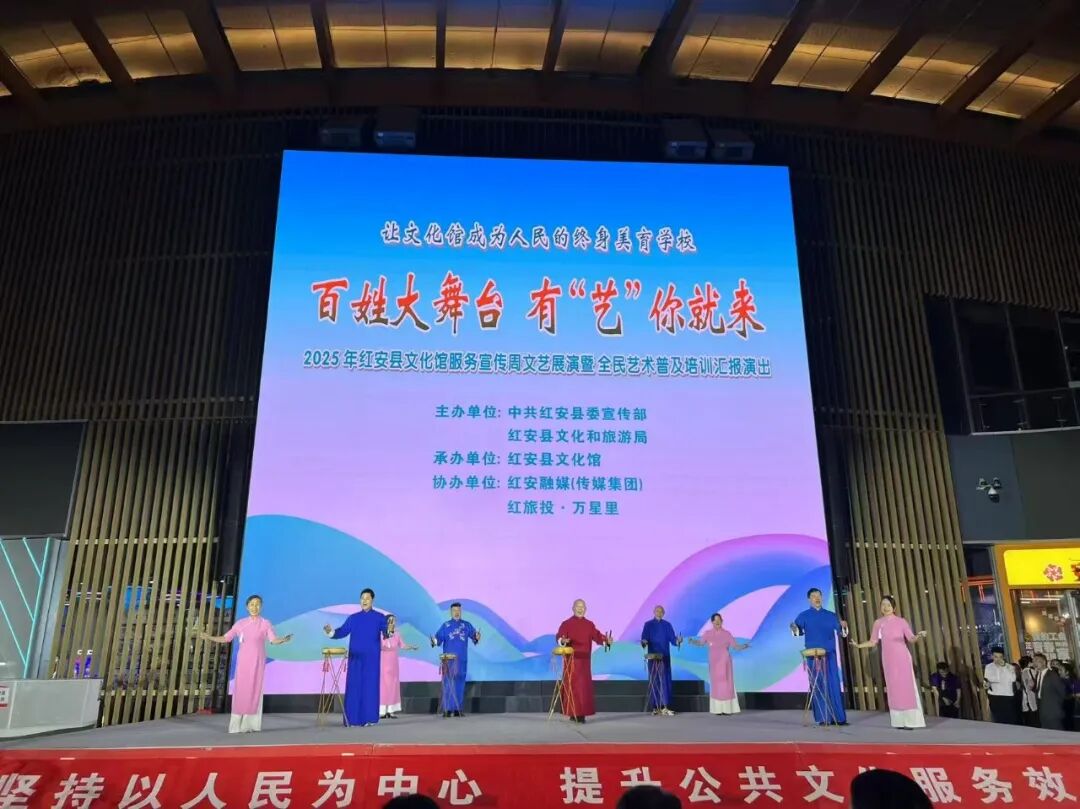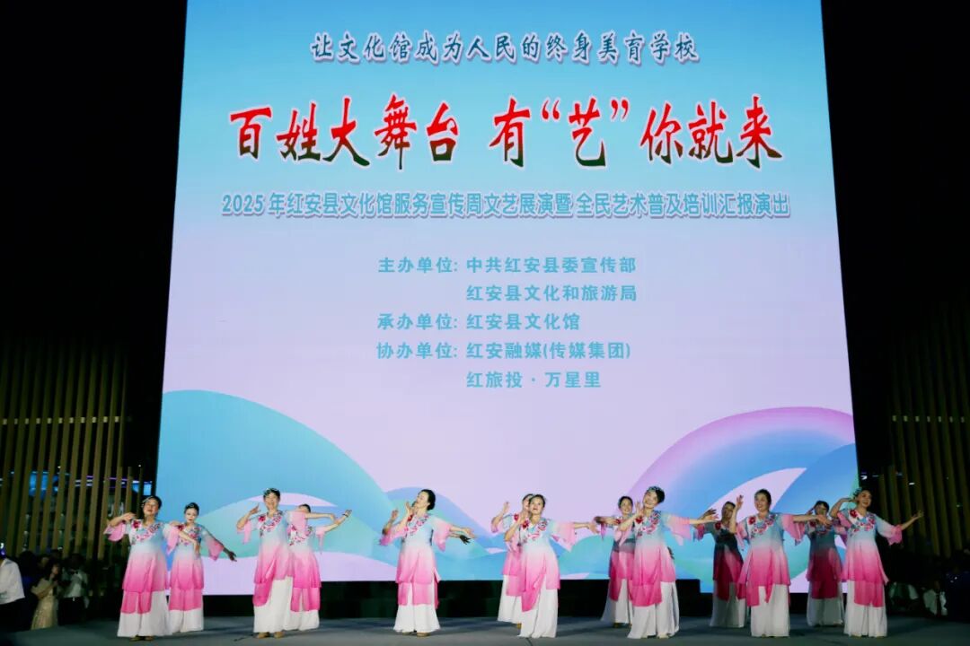 红安网消息 在文化的广阔天地中,每个人都可以是艺术的主角。5月23日晚,由红安县委宣传部、县文旅局主办,县文化馆承办的“百姓大舞台 有‘艺’你就来”——2025年红安县文化馆服务宣传周文艺展演暨全民艺术普及培训汇报演出在红旅投·万星里成功举办。200余名培训学员参加演出,现场星光闪耀、精彩连连,吸引了线上线下近2000余名观众,为本期公益培训献上浓墨重彩的收官礼。