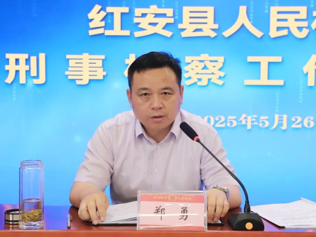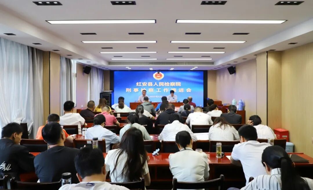 红安网消息 5月26日,红安县人民检察院召开刑事检察工作推进会,传达贯彻湖北省检察机关强化数字赋能“两项监督”和规范刑事“挂案”清理工作调度会精神,深入研判当前刑事检察态势、查摆自身短板弱项,部署下一步重点任务,推动进一步提升刑事检察工作质效。院党组书记、检察长郑勇出席会议并讲话。
