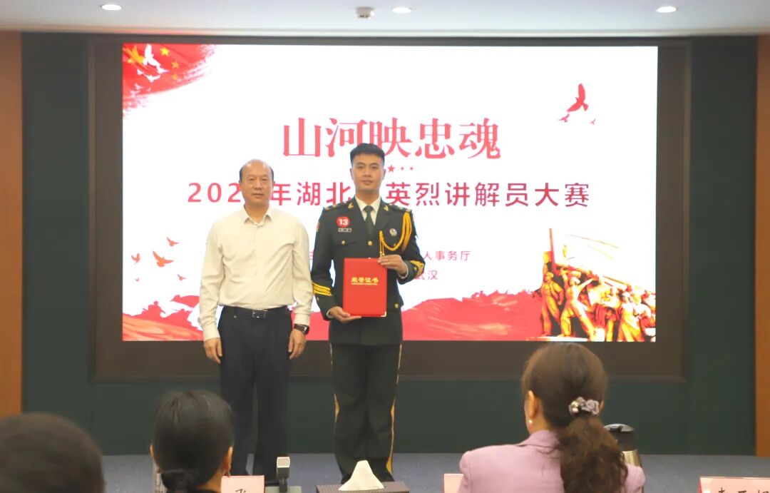 红安网消息 5月26日,在湖北省退役军人事务厅举办的“山河映忠魂”全省英烈讲解员大赛中,经过省厅评审、复赛、决赛环节,最终代表黄冈市参赛的黄麻纪念园游客中心讲解员徐桢荣获三等奖,黄冈市退役军人事务局获评优秀组织奖。省退役军人事务厅党组书记、厅长杨爱东出席活动并颁奖。