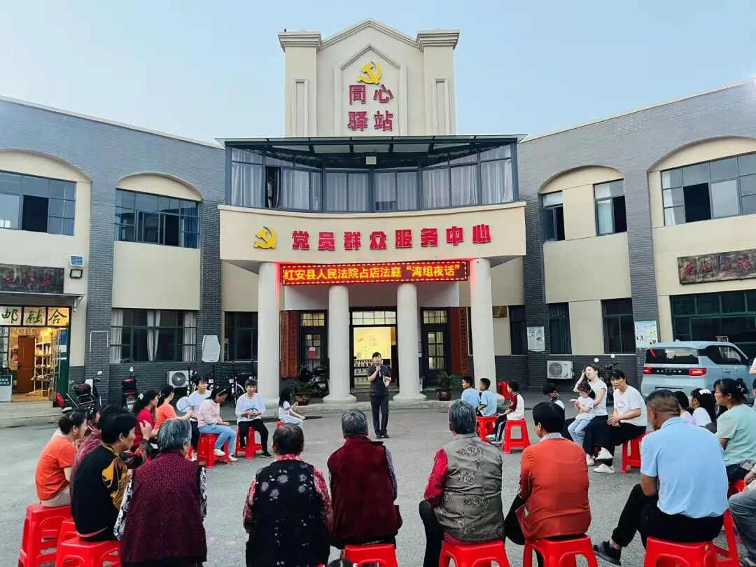 红安网消息 夏日晚饭后,红安县高桥镇程河村党群服务中心门口人头攒动,法庭干警、村干部、村民代表围坐在一起,一场关于法治的“湾组夜话”正热闹进行。