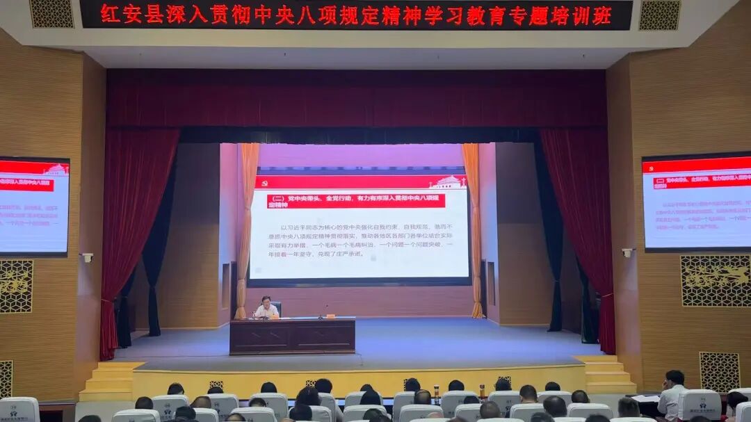 红安县委常委、县纪委书记、县监委主任段炎涛开展深入贯彻中央八项规定精神学习教育专题辅导,为党员干部深入解读相关规定的重要意义和具体要求,进一步筑牢党员干部思想防线,以学促行推动中央八项规定精神在基层落地生根、见行见效。