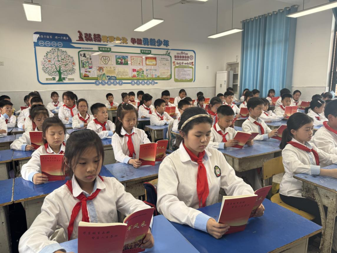 感悟于心,践之于行。志愿服务我先行。董必武中队走上街头宣传防诈骗、防灾知识;秦基伟中队动手清理将军故居周边环境。小小行动,擦亮“红安永远红”的底色!才艺致敬表心意。在李先念主席铜像前,队员们献上特别心意:一年级小朋友以手势舞《半生雪》传递家国情怀;队员们合唱《童心向党》,现场挥毫书写“崇高风范”,用艺术传递敬意,展现新时代少年的阳光风采!