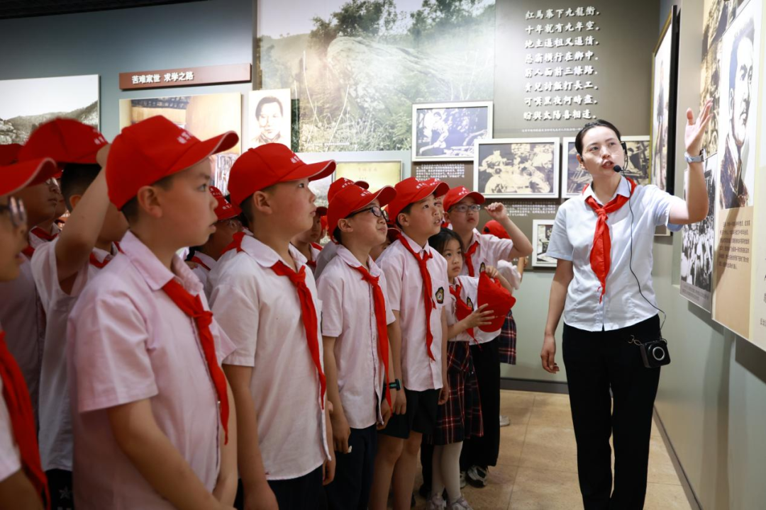 研学不止于回望,更连接当下与未来。读懂“大别山精神”。在李先念故居的斑驳砖墙旁,在七里坪红四方面军指挥部旧址的泛黄史料里,“坚守信念、胸怀全局、团结奋进、勇当前锋”的大别山精神内核深深烙印在队员心中。惊叹“中国成就”。走进叶河村“政治生活体验馆”,解放军某部捐赠的火箭模型瞬间点燃全场!新时代改革发展的壮阔画卷与辉煌成就,让队员们由衷自豪。体验“乡村振兴”。韩先楚中队的队员们探访家乡“苕大哥”现代农业基地。目睹红薯通过高科技深加工变身多样产品,队员们惊叹不已。队员梅子琪勇敢走进直播间,化身家乡农产品“小小代言人”:“我要好好学习,未来用知识把家乡建设得更美!” 传统农业与新时代火花的碰撞,点燃了队员科技兴农的梦想。