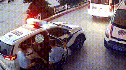 民警迅速拉响警笛、打开警灯
