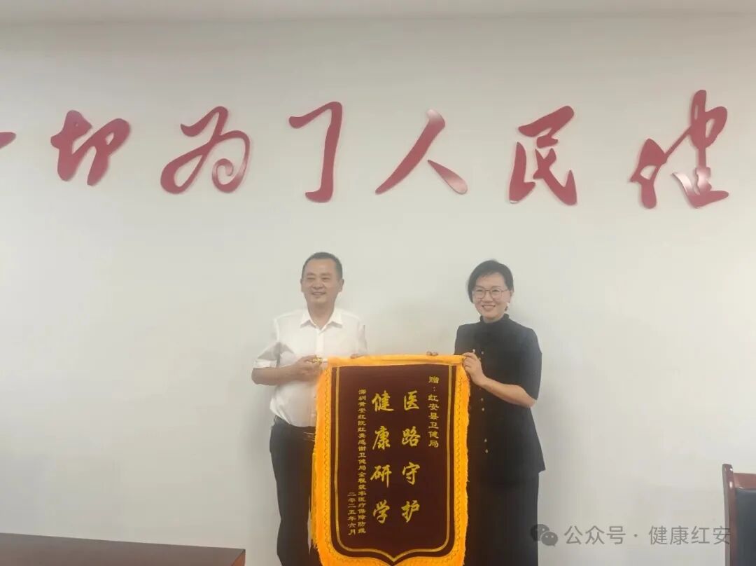 红安网消息 6月17日,深圳市福田区红岭教育集团负责人来到红安县卫健局,送上写有“医路守护、健康研学”的锦旗,对红安县卫健局在粤港澳大湾区学生来红安研学活动中的全力保障表示诚挚感谢。