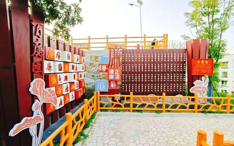 该口袋公园位于三峡路一侧,占地面积1200平方米,以“融廉于景,化廉于心”为主题,依山就势打造观赏性强、趣味性强的廉政微景观,让市民在休闲娱乐的同时感受廉政文化。