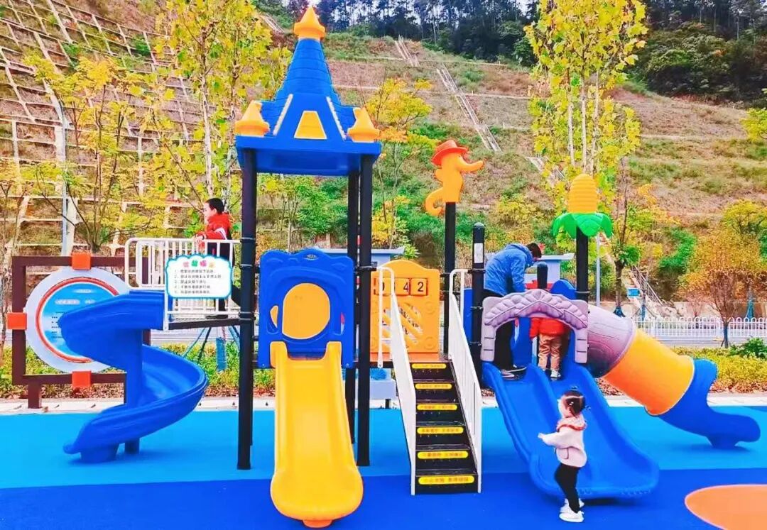 小朋友们在滑梯、沙坑边嬉笑玩耍