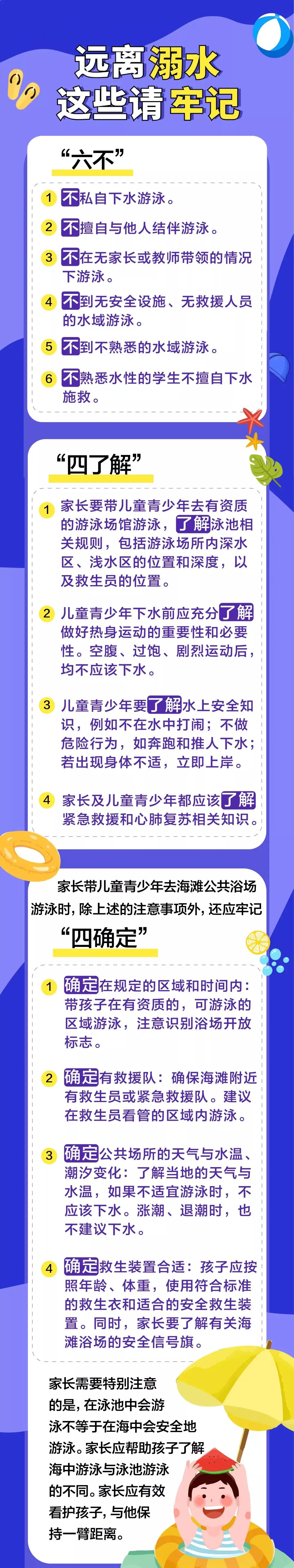 1.不要在没有家长陪同下私自下水游泳;