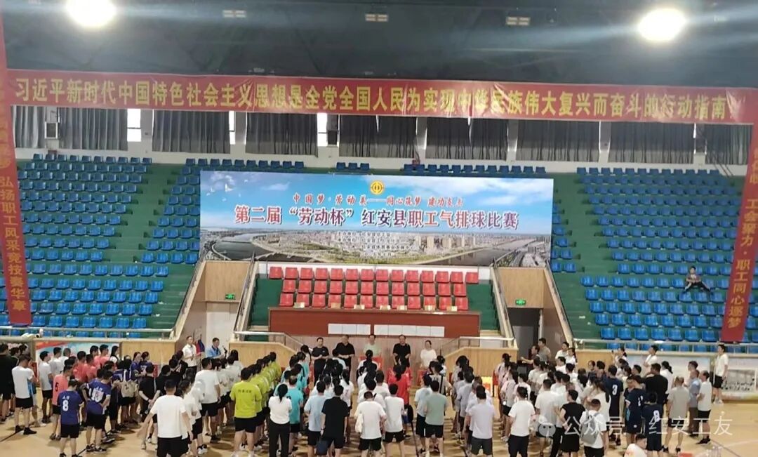 红安网消息 7月6日下午16时,随着最后一声哨响,为期三天的第二届“劳动杯”红安县职工气排球比赛在县体育馆圆满落下帷幕。本次比赛由红安县总工会主办,县工人文化宫、县体育事业发展中心承办,以“中国梦·劳动美--同心筑梦 建功支点”为主题,吸引了全县机关企事业单位29支队伍踊跃参赛,展现了红安县职工昂扬向上的精神风貌。