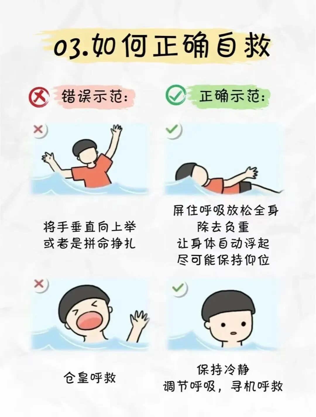 1. 如何自救?保持冷静:慌乱会加速体力消耗,尽量放松身体,采取仰漂姿势等待救援。利用浮力:抓住身边的漂浮物(如空水瓶、木板等)。呼救:挥手并大声呼救,吸引他人注意。