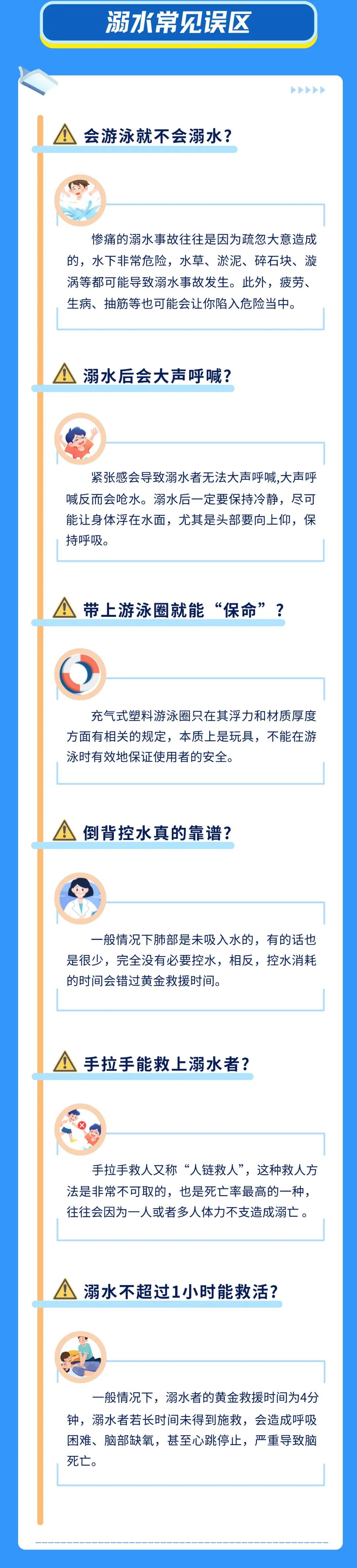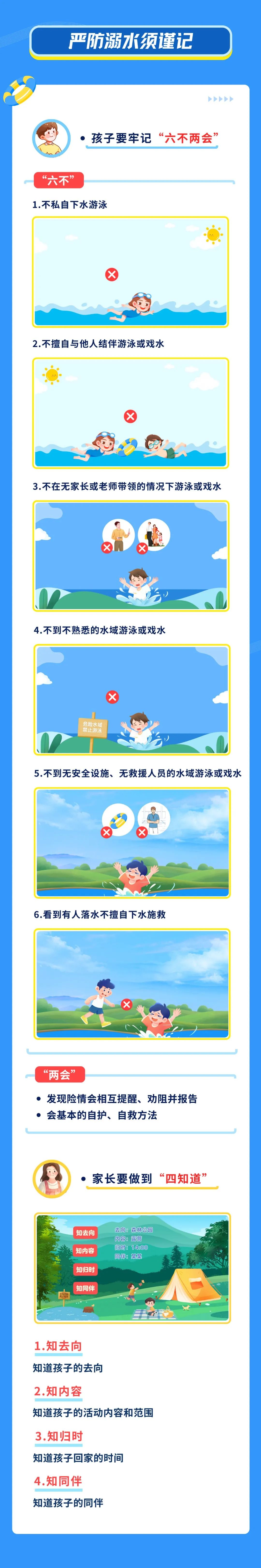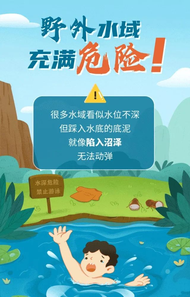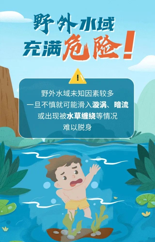 随着气温上升 孩子们户外活动频率增高 一次贸然涉水、一次疏于监护、 一次盲目施救…… 都可能让人陷入溺水危机 下面这套防溺水测试题 你能得满分吗? 一起来测试—— 世界游泳冠军杨丽娜 亲身示范正确自救法 ↓↓↓ 中国红十字会,赞8575 “野游”存在哪些危险? 预防溺水应该怎么做? 继续来看以下安全提示——