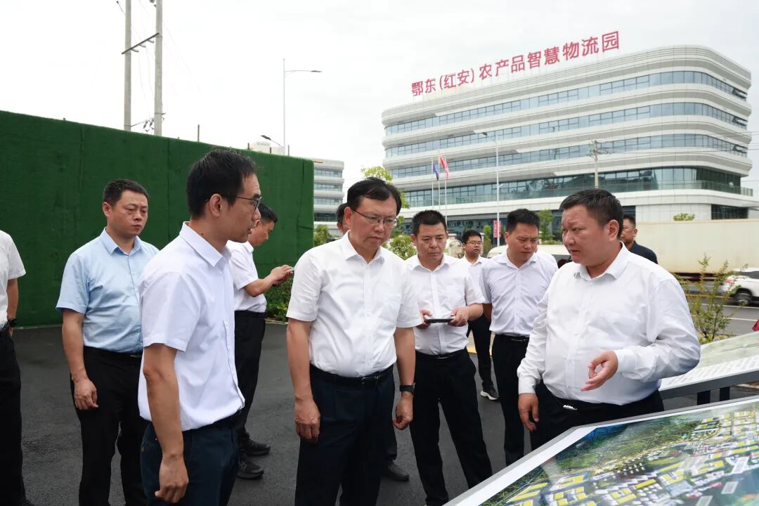 胡广实地查看蛋制品精深加工及生物提取项目、中农联·红安国际农商城展示中心、鄂东农产品智慧物流园等项目建设现场,详细了解项目建设进展和运营规划。