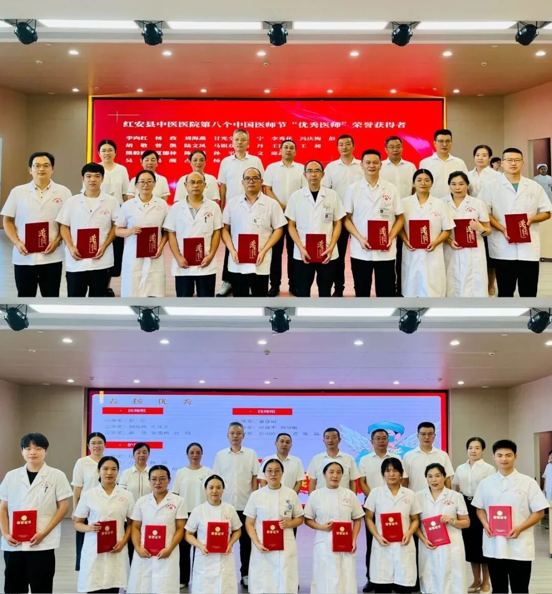 红安网消息 8月18日下午,红安县中医医院东上店院区门诊五楼学术报告厅气氛庄重而热烈,医院在此隆重举行庆祝第八个“8·19”中国医师节系列活动。该院全体院领导班子成员,吴吉永、董昌山、王保青、薛清平等4位名中医大师,各科室负责人、优秀医师代表、康复技能大赛获奖者及全体不值班医师共聚一堂,共同致敬医者仁心。