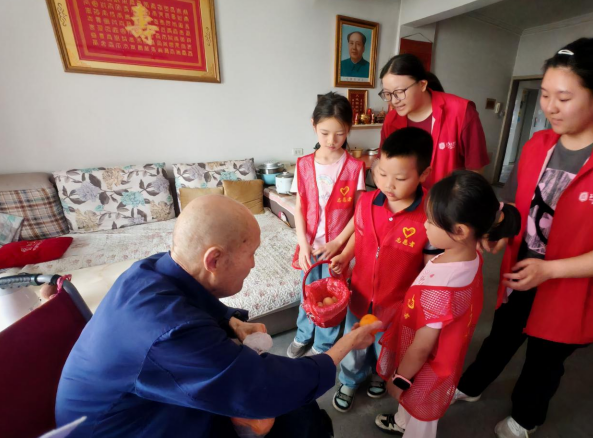 “社工+志愿”驱动,夯实专业保障。以中社部“专业社工+志愿服务”融合试点为契机,在资源整合、服务精准化、志愿者专业化等方面持续探索,依托暖阳阳社会工作服务中心提供专业服务。针对儿童提出的“募集鸡蛋送温暖”活动,设计“鸡蛋旅行”志愿服务项目,及时发布招募令,为青年志愿者和孩子们进行系统培训,内容涵盖沟通技巧、安全知识、服务礼仪等多方面,全方位保障活动的安全性与有效性。同时,组织志愿者定期上门送餐、探望,及时了解老人们的需求,推动服务向精神慰藉与需求响应的深度与广度延展。