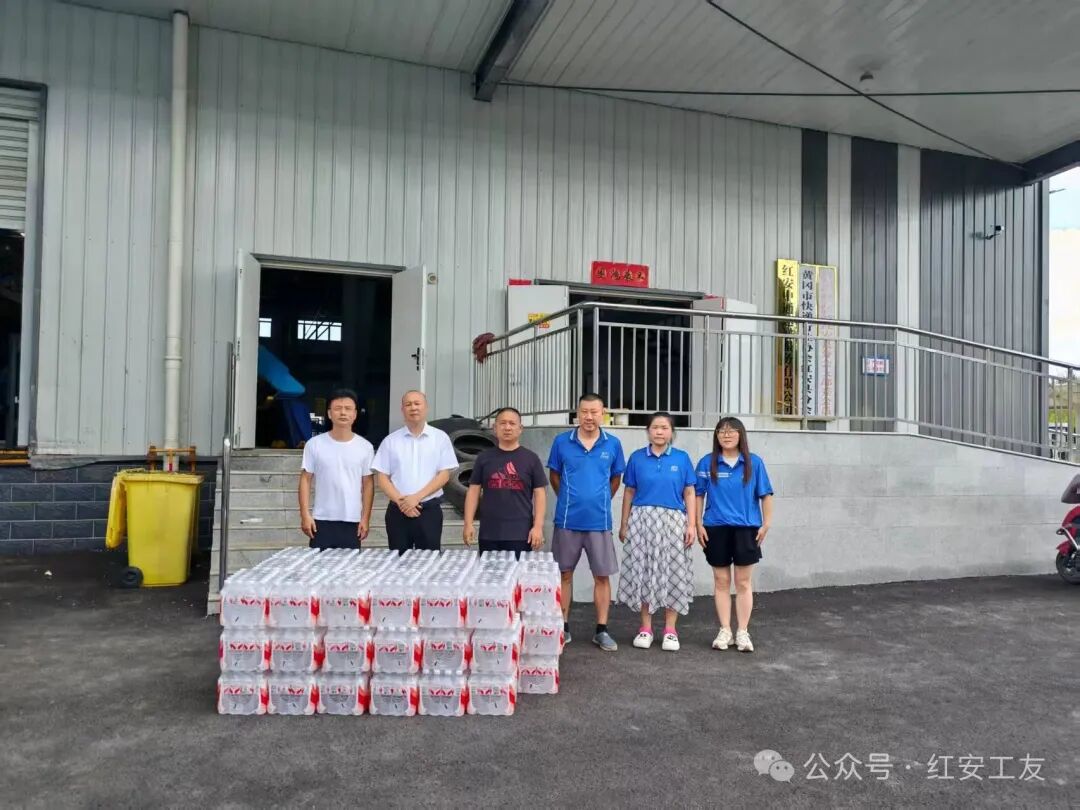 红安网消息 时值盛夏,酷热难当,为加强对新就业形态劳动者的关心关爱,预防高温中暑和安全生产事故,8月21日,红安县总工会联合县委社会工作部,慰问中通、顺丰、邮政等7家快递行业的分拣中心,开展“夏送清凉·关爱相伴”慰问活动,为一线快递员送去夏日的清凉。