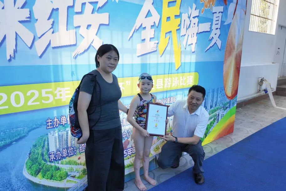 红安网消息 近日,红安县“泳者杯”游泳比赛在红福游泳馆开赛,这场全民健身赛事不仅为夏日注入活力,更诞生了一名红安文旅推广大使。本次赛事的“新星”吴锦怡,凭出色表现与对游泳的热爱,当选“红安文旅推广大使”。