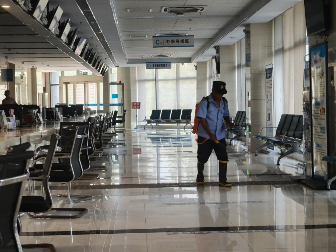 组织全体干部职工和后勤工作人员清理大厅内部卫生死角以及大厅外广场绿化带中的绿植枯叶、污水垃圾,全面提升卫生标准,确保环境整洁,从根本上消除蚊虫滋生环境。