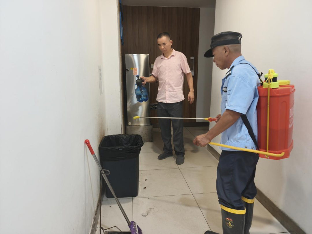 严格执行消毒制度,安排专人每日巡查清洁工作,增加内部保洁力度。总服务台、导办台、卫生间等处配备驱蚊液,供群众免费取用,各楼层卫生间均放置驱蚊蚊香。