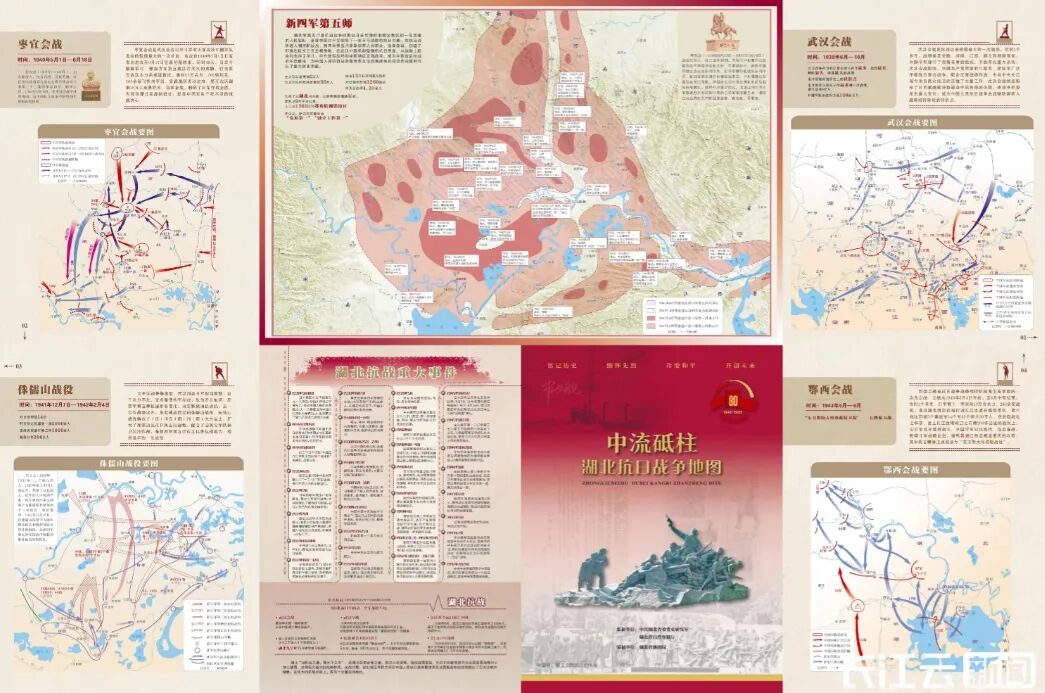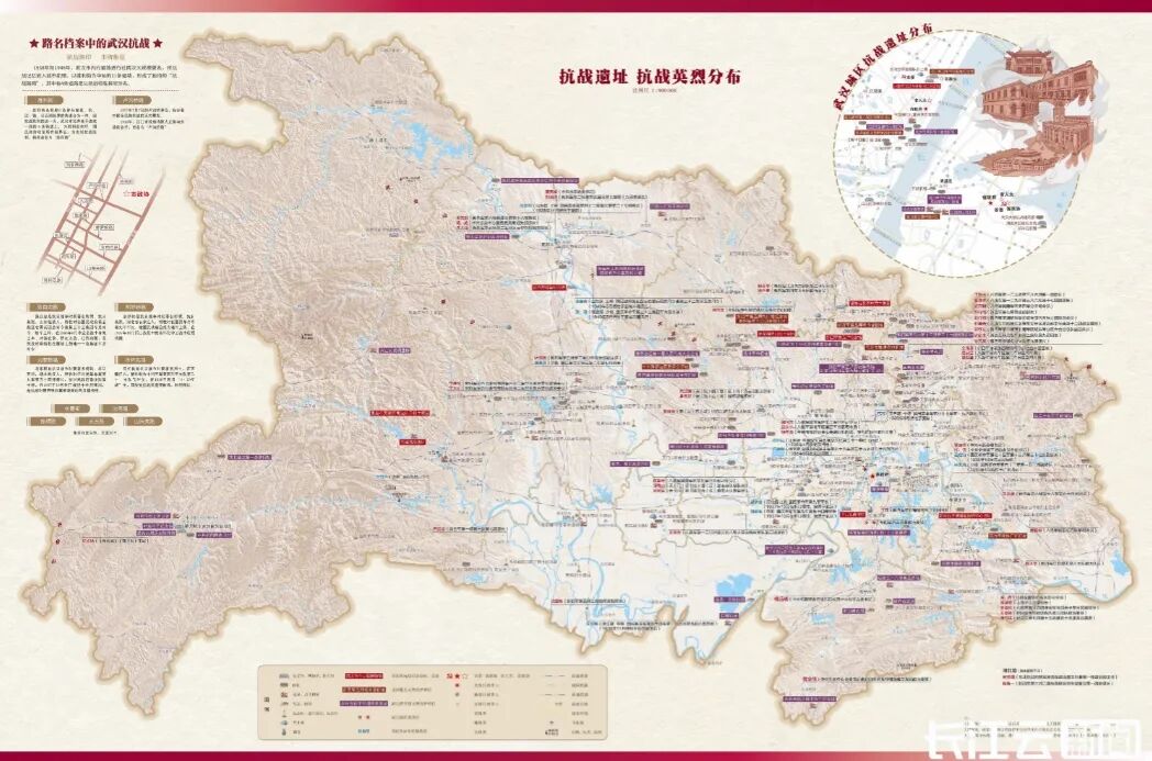 据介绍,湖北是中国抗日战争的重要战场,在中国人民抗战史上,湖北抗战具有十分重要的历史地位。该地图正面为湖北抗战大事记,并用地图的形式表现了在湖北发生的武汉会战、枣宜会战、侏儒山战役、鄂西会战等重大战役,在地图上追忆了由中国共产党领导的新四军第五师在湖北的抗战足迹。地图反面为在湖北省地图上标注了国家级抗战纪念设施遗址、国家级和省级重要抗战文物保护单位和湖北籍以及牺牲在湖北的著名抗日英烈。