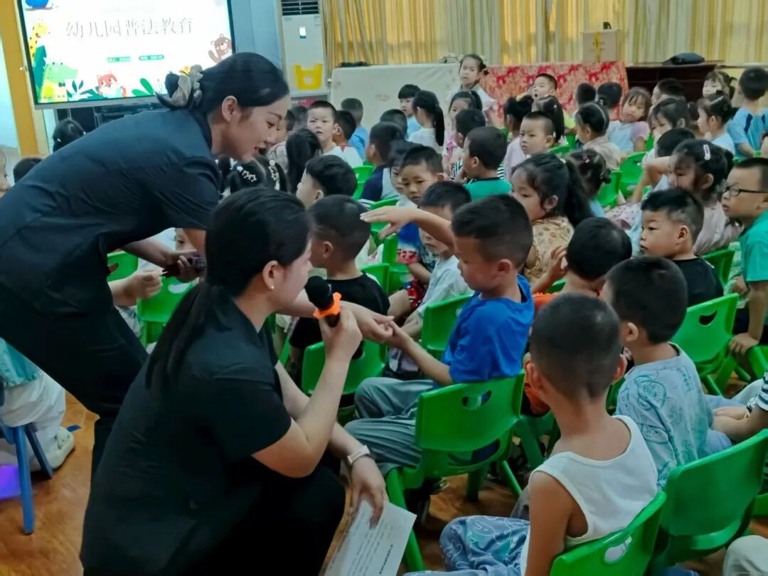近日,占店法庭干警走进红安县城南幼儿园高桥园区,带领幼儿园的小朋友们体验了一趟“沉浸式”法治之旅。