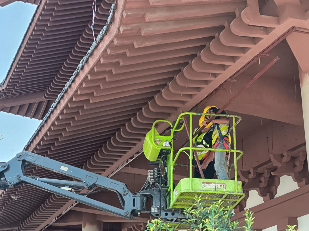 “受持续的高温影响,部分施工进度滞后,目前正全力抢工期。”项目建设方上海宝冶集团有限公司现场施工负责人刘一航介绍,为确保西游客服务中心在国庆节能够投入使用,仅该项目就调集了100余名施工人员和十余套机械设备密集赶工。