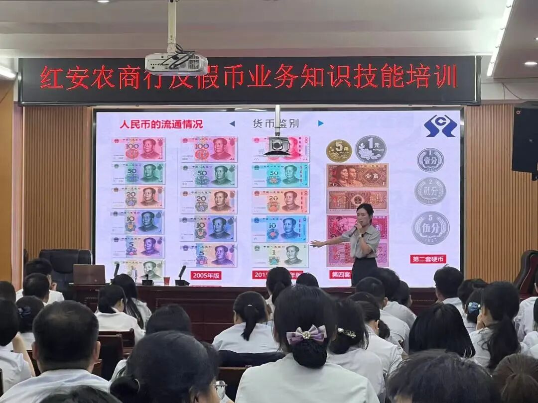 聚焦反假技能,炼就“火眼金睛”。培训特邀武汉米创培训公司资深讲师进行反假币技能授课。讲师采取"理论+实操"相结合的方式,重点讲解了现行流通人民币的防伪特征,通过实物对比演示了水印、光变安全线等关键标识的辨别方法。课程还结合近期假币流通新特点,分析了新型假币识别难点,并组织参训人员通过"看、摸、听"等方法进行实操演练,有效提升了员工的反假币实战能力。