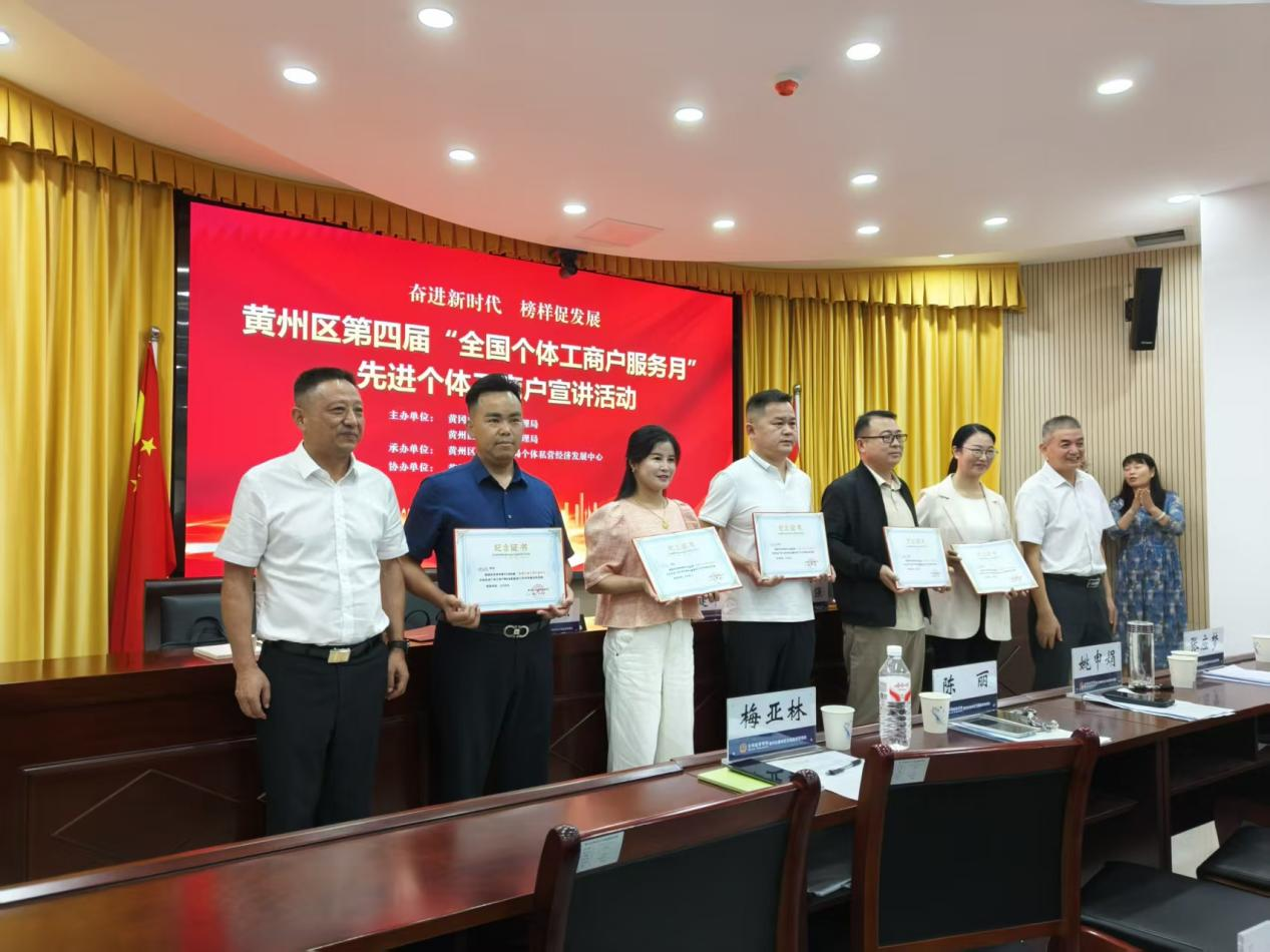 会上,黄州区梅亚林、团风县陈丽、浠水县姚申娟、红安县张应梦、麻城市王本娥等5名优秀个体工商户代表获黄冈市个体私营企业协会颁发的纪念证书。