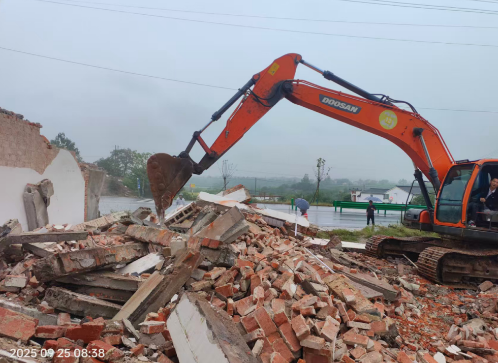 拆除现场,安全措施更是落到实处:对周边建筑进行细致防护,在施工区域拉设安全隔离网,设置醒目警示标志,全程做到规范操作、文明施工。从9月22日启动拆除工作,到9月27日镇专班完成最后两户房屋拆除,仅用6天时间,G346国道水口寺村红线外侧的残垣断壁便全部清理完毕。“现在国道沿线视野敞亮多了,再也不用担惊受怕,出门心里都踏实!” 村民古大爷望着整洁的现场,脸上露出了欣慰的笑容。