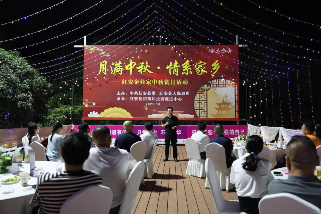 一轮明月照归途,一座心桥联楚商。月到中秋分外明,人逢佳节情更切。10月6日晚,一场以“月满中秋·情系家乡”为主题的企业家中秋赏月活动在红安水木山居酒店温情上演,成功搭建起楚商返乡的“连心桥”。红安县委副书记、代县长钟林等县领导与来自武汉、北京、深圳等地的32名返乡企业家、本地重点企业代表欢聚一堂,在温馨的氛围中共叙乡情、共话发展、共谋合作。活动不仅传递了家乡的问候与诚意,更通过介绍红安经济社会发展新貌、产业布局及营商环境优势,坚定了楚商回报桑梓的信心。一场绚丽的烟花秀与对黄安古城·红安影视幻城的探访,生动展现了红安从“基因红”到“发展红”的华彩蝶变。仅此一场活动,便收获宝贵项目信息11条。