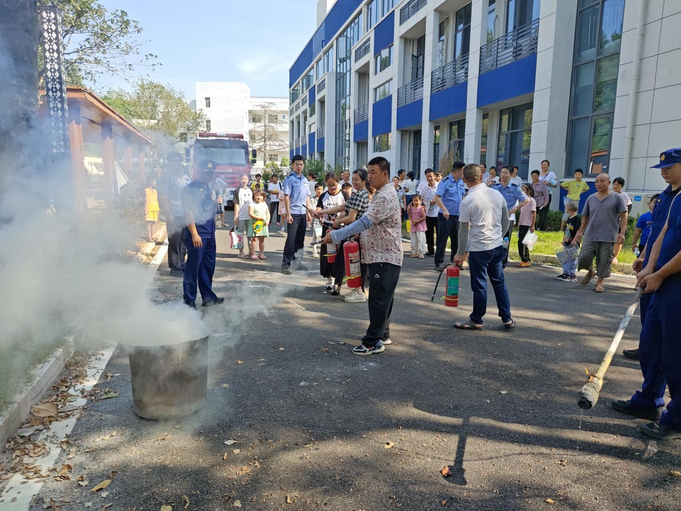 疏散演练结束后,县消防大队的指战员为全体师生带来了一场别开生面的“消防安全知识公开课”。消防员结合校园火灾特点,用通俗易懂的语言,详细讲解了如何预防火灾、如何正确报警、如何扑救初期火灾以及火场逃生自救等基本消防常识,为了让师生们获得更直观、更深刻的体验,在消防员的专业指导下,学校教师、后勤保安及学生代表纷纷上场,亲身体验了如何扑灭“油盆火灾”,成功将理论知识转化为实战技能。
