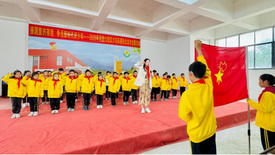 在队旗的见证下,新队员在大队辅导员老师带领下,高举右拳,庄严宣誓。誓言铿锵,目光坚定,彰显出他们作为新时代好少年听党话、跟党走的信念与决心。