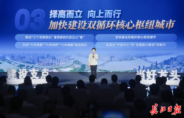 “面向‘十五五’,我们将紧紧围绕全省支点建设部署,按照市委、市政府推动‘三个优势转化’、重塑新时代武汉之‘重’要求,加快建设双循环核心枢纽城市,巩固‘九州通衢’‘九州通商’‘九州通融’枢纽地位,实现从‘中部中心’向‘全国核心枢纽’的跃升。”余力军说。