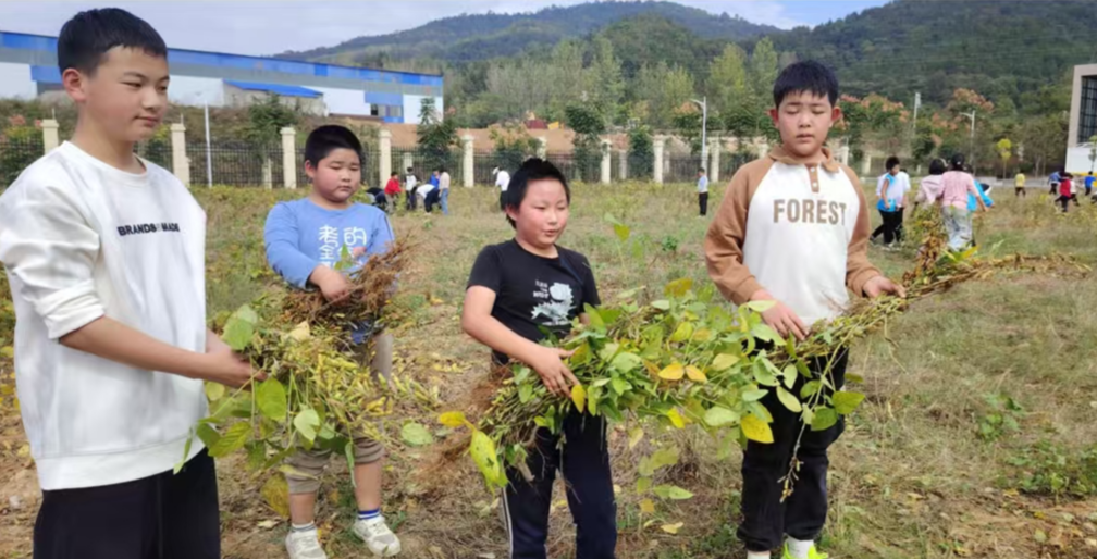 红安网消息 金秋时节,红安县将军城小学华河校区劳动实践基地里满是丰收喜悦——师生共育数月的大豆挂满金黄豆荚,10月14日上午,政教处组织五年级学生沉浸式体验拔黄豆,让劳动教育在泥土香里 “活” 起来。