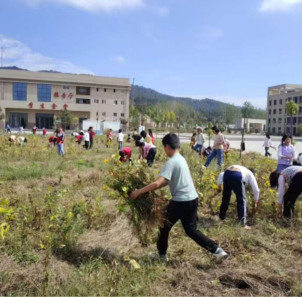 活动前,班主任细致讲解劳动要点与安全须知。田间地头,阳光映着孩子们忙碌的身影:或蹲或弯腰,双手紧扣豆株根部轻拔,拔出后细心抖落泥土,再将豆株整齐摆上田埂。遇上扎根深的豆株,同学们便互相搭手,一人扶株、一人助力,拔豆的欢呼、抖泥的轻响伴着欢声笑语,绘就秋日里最鲜活的劳动图景。