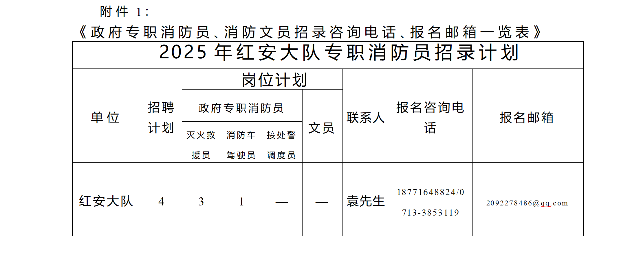 1.此次招录采取现场报名及网络报名方式,可到红安消防救援大队现场报名或通过红安县消防救援大队报名电子邮箱投递报名表。